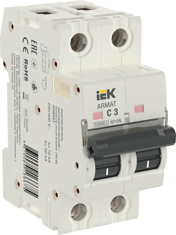 Выключатель автоматический двухполюсный M10N 2P C 3А 10кА ARMAT | AR-M10N-2-C003 IEK