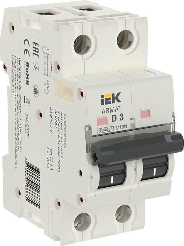 Выключатель автоматический двухполюсный M10N 2P D 3А 10кА ARMAT | AR-M10N-2-D003 IEK