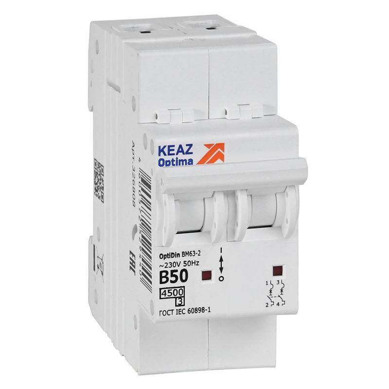 Выключатель автоматический двухполюсный 50А B 4,5кА AC OptiDin BM63-2B50-4,5-УХЛ3 - 329515 КЭАЗ
