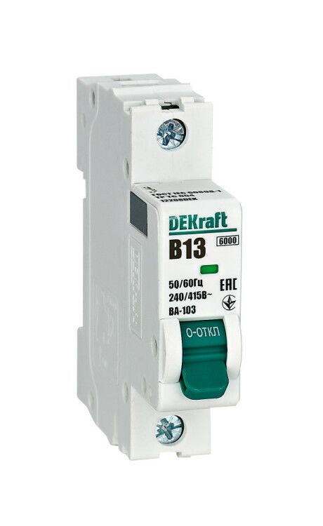 Автоматический выключатель ВА-103 от DEKraft - однополюсный защитный аппарат на 13 А с характеристикой B и отключающей способностью 6 кА. Подходит для защиты бытовых и промышленных цепей переменного тока, устанавливается на DIN-рейку и полностью совместим с корпусами DEKraft и Systeme Electric.