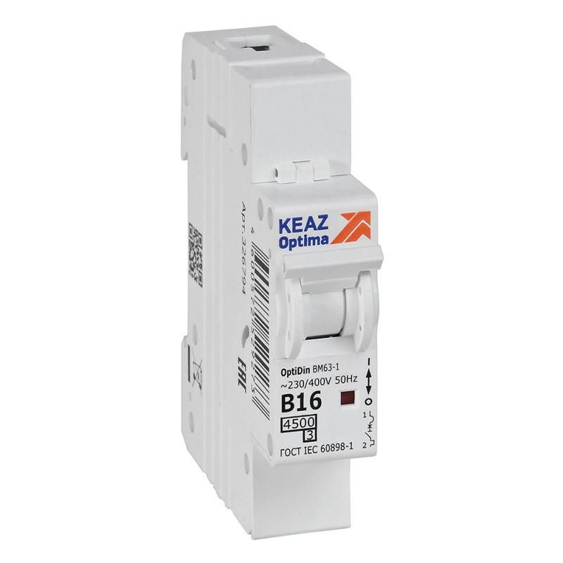Выключатель автоматический модульный 1п B 16А 4.5кА OptiDin BM63-1B16-4.5-УХЛ3 КЭАЗ 329501