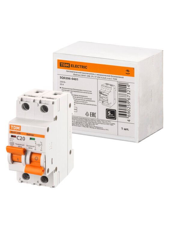 | Выключатель автоматический с механической блокировкой (байпас) ВА47-29Б 1Р+1Р 20А 4,5кА х-ка C | SQ0206-0401 | TDM | 06.03.2026 | Под заказ | 699,84 ₽ | шт. | от 30 дней |
