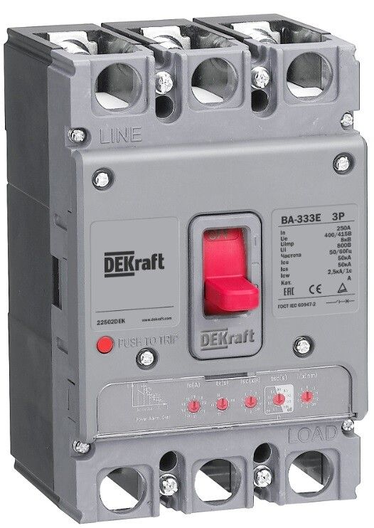 Автоматический выключатель ВА-333E от DEKRAFT - трёхполюсное устройство с электронным расцепителем на 125 А и отключающей способностью 50 кА, предназначенное для защиты силовых цепей переменного тока в промышленных системах. Устройство обеспечивает точную настройку защитных параметров, надёжное отключение при авариях и совместимо с автоматизированными системами управления.