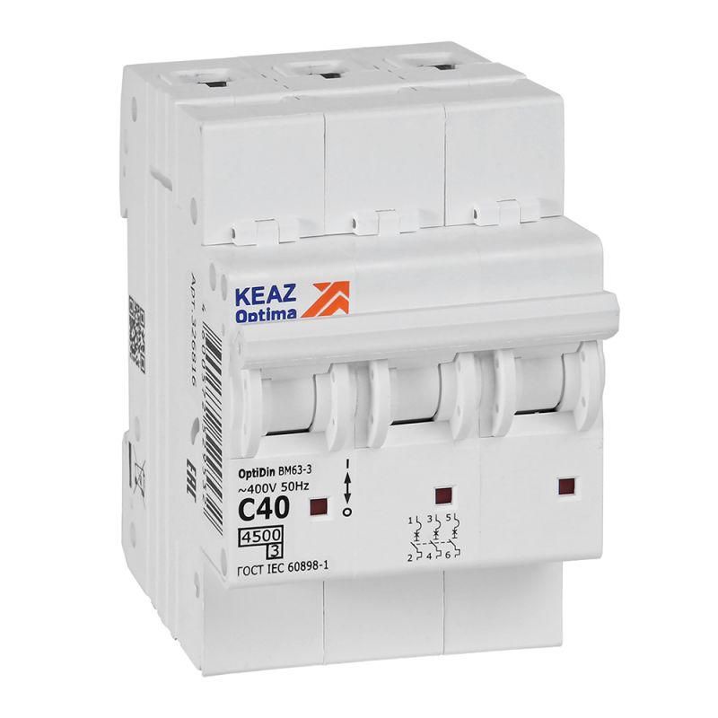 Выключатель автоматический трехполюсный 40А C 4,5кА AC OptiDin BM63-3C40-4,5-УХЛ3 - 326816 КЭАЗ