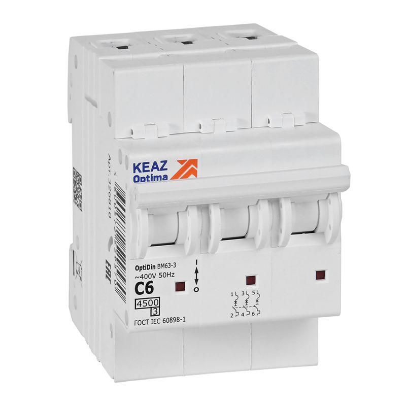 Выключатель автоматический трехполюсный 6А C 4,5кА AC OptiDin BM63-3C6-4,5-УХЛ3 - 326810 КЭАЗ