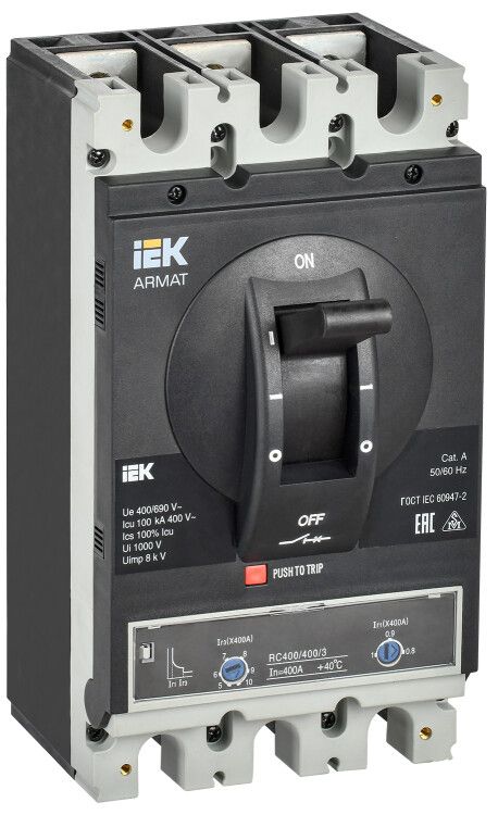 Выключатель автоматический в литом корпусе ARMAT 3P типоразмер H 100кА 400А расцепитель термомагнитный регулируемый - AR-MCCB-3H-100-0400A-ATUC IEK