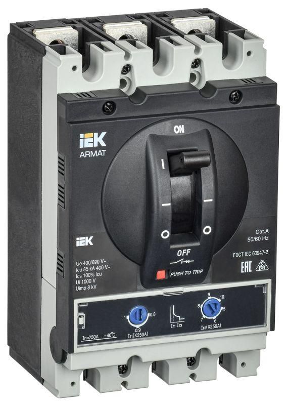 Выключатель автоматический в литом корпусе 3п H 85кА 250А расцепитель термомагнитный регулируемый ARMAT IEK AR-MCCB-3H-085-0250A-ATUC