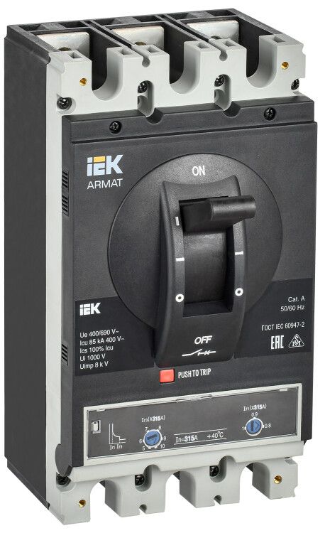 Выключатель автоматический в литом корпусе ARMAT 3P типоразмер H 85кА 315А расцепитель термомагнитный регулируемый - AR-MCCB-3H-085-0315A-ATUC IEK