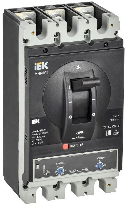 Выключатель автоматический в литом корпусе ARMAT 3P типоразмер I 85кА 500А расцепитель термомагнитный регулируемый - AR-MCCB-3I-085-0500A-ATUC IEK