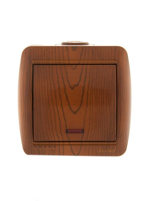 Выключатель 1-кл. ОП Nata 10А IP20 с подсветкой сосна LEZARD 710-0800-111