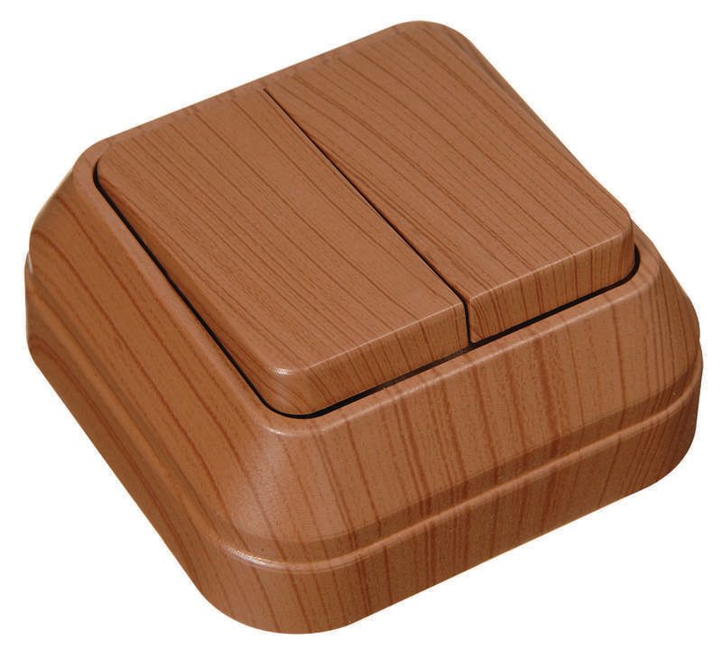 Выключатель двухклавишный накладной орех - 45403 Makel