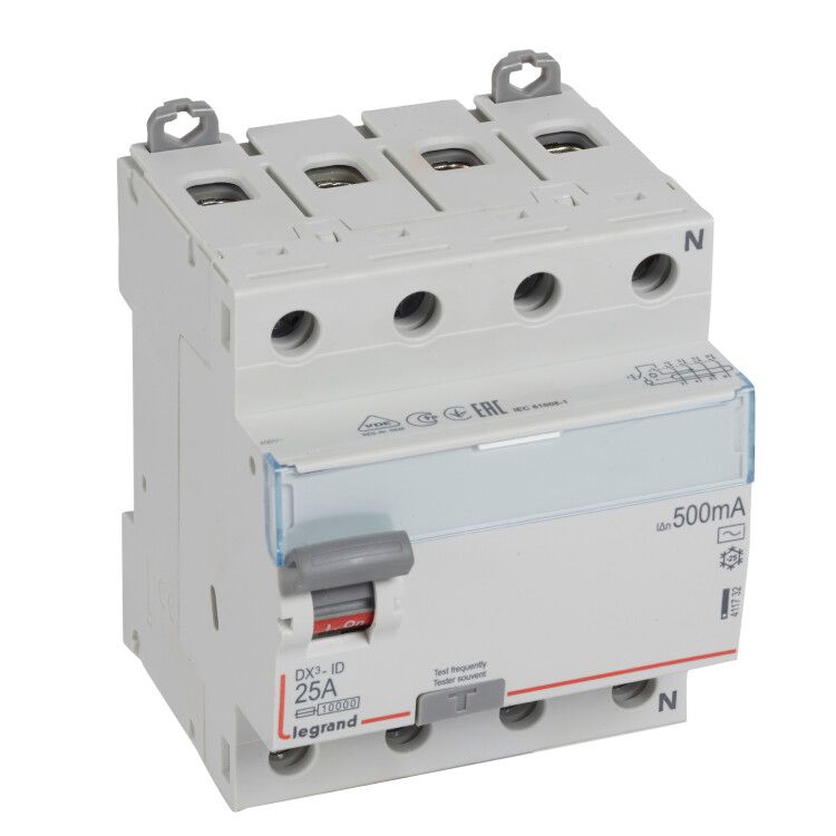 Выключатель дифференциальный (УЗО) DX3-ID 4п 25А 500мА тип AC | 411732 Legrand
