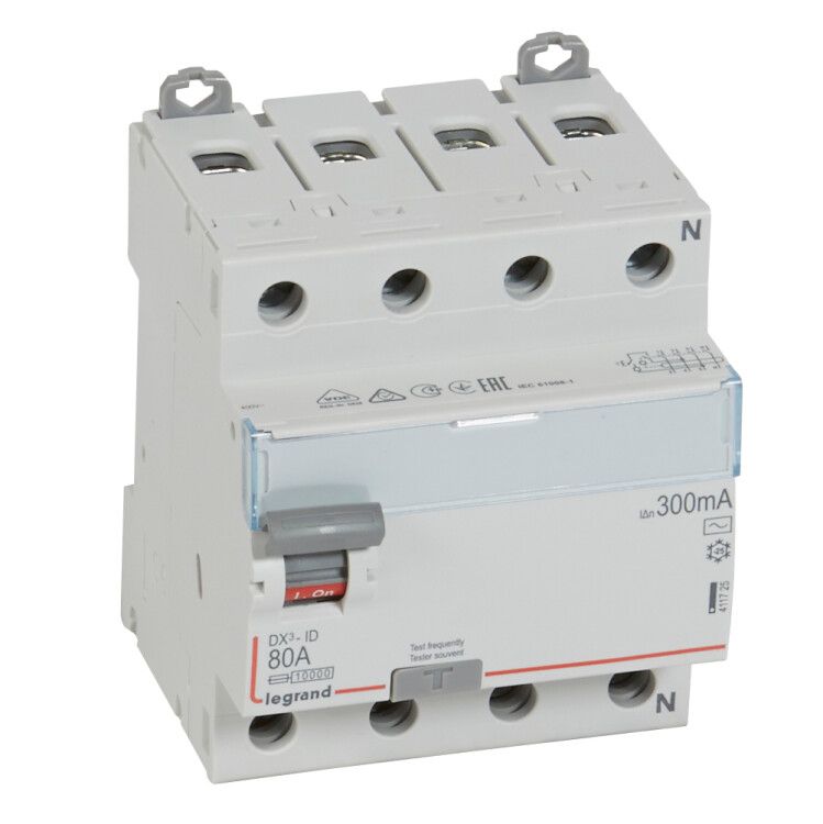 Выключатель дифференциальный (УЗО) DX3-ID 4п 80А 300мА тип AC | 411725 Legrand