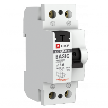 Выключатель дифференциальный (УЗО) ВДТ-40 2п 16А 10мА (тип АС, электронное) BАsic | elcb-2-16-10e-sim EKF