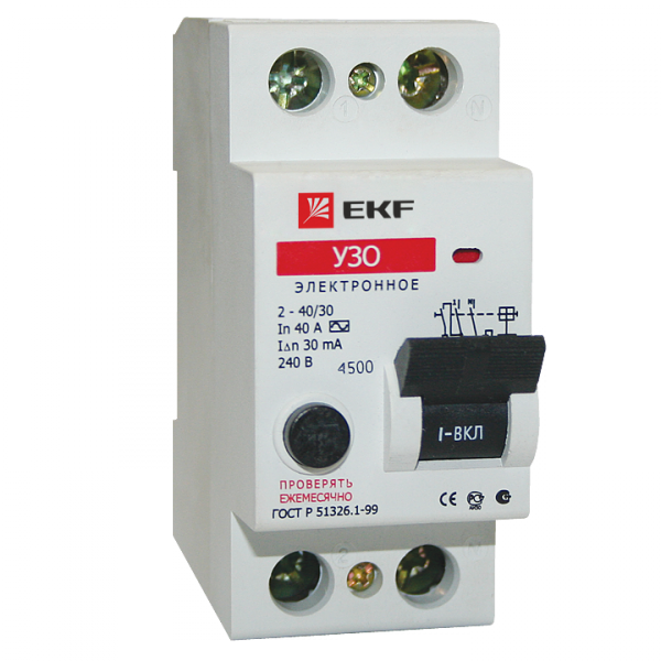 Выключатель дифференциального тока (УЗО) 2п 25А 30 мА АС - elcb-2-25-30e EKF