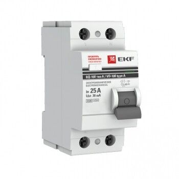 Выключатель дифференциальный (УЗО) ВД-100 2P 25А/30мА (тип А, электромехническое) PROxima | elcb-2-25-30-em-a-pro EKF