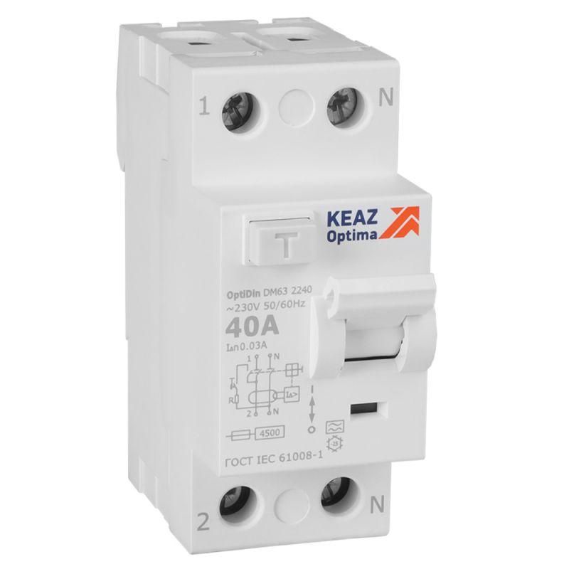 Выключатель дифференциального тока (УЗО) без защиты от сверхтоков 2П 40А 30мА A 4,5кА OptiDin DM63-2240-A-4,5-УХЛ4 - 343913 КЭАЗ