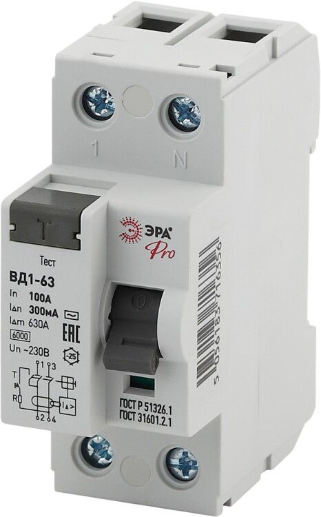 Выключатель дифференциального тока (УЗО) 1P+N/2P 100А 300мА ВД1-63 NO-902-60 от бренда ЭРА предназначен для защиты людей от поражения электрическим током и предотвращения пожаров из-за утечек тока. Устройство работает без внешнего питания, надёжно защищает цепи с нагрузкой до 100 А и монтируется на DIN-рейку.