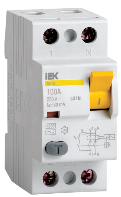 Выключатель дифференциальный (УЗО) ВД1-63 2п 100А 30мА тип AC | MDV10-2-100-030 IEK