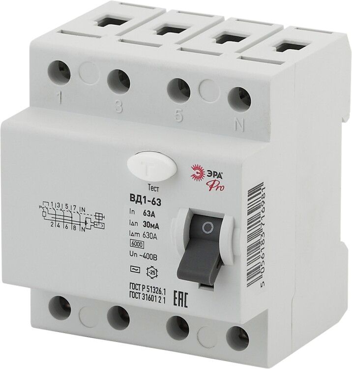 | Выключатель дифференциальный (УЗО) ВД63 (электронное) 4Р 63А 30mA NO-902-135 ЭРА | Б0031956 | ЭРА | 19.02.2026 | 22 шт. | Розничная цена 1 285,88 ₽ | шт. | от 30 дней |
