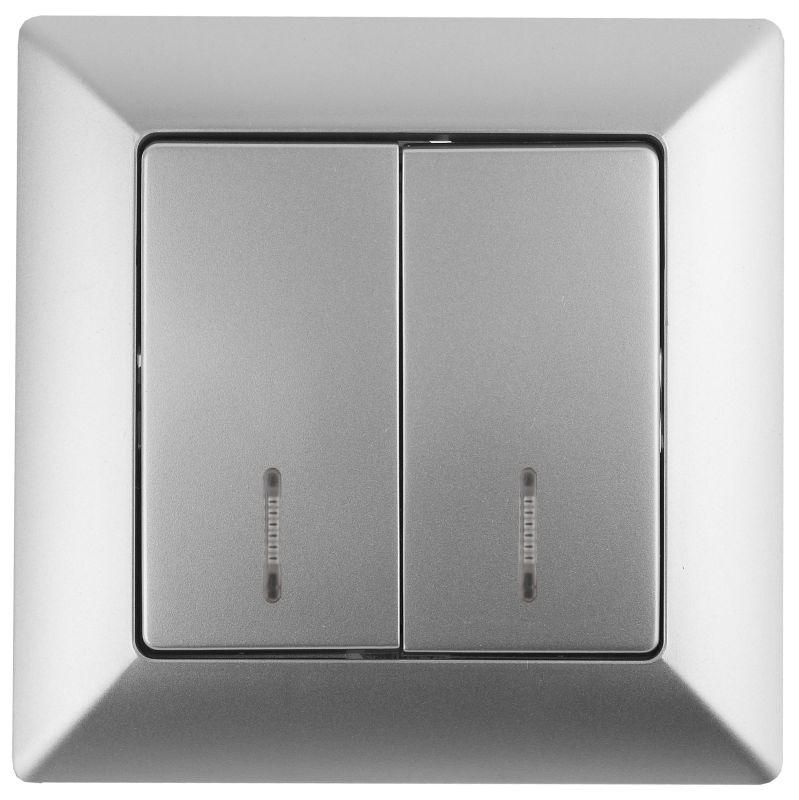Выключатель двойной с подсветкой, 10А-250В, СУ, Solo, алюминий,4-105-03 - Б0043293 ЭРА