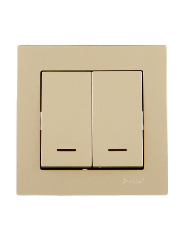 Выключатель двойной с подсветкой золото от Lezard (артикул 742-3688-112) предназначен для управления двумя независимыми группами светильников из одного места. Подсветка клавиш помогает найти выключатель в темноте, а золотистый цвет корпуса подходит для интерьеров в классическом или элегантном стиле.