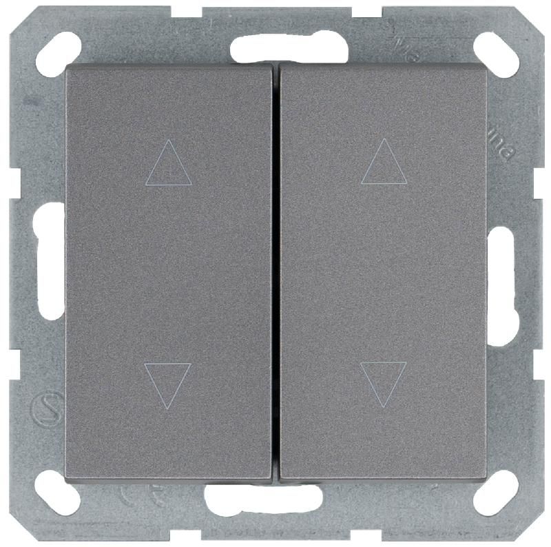 Выключатель двухклавишный для штор 10A 250V~ с накладкой, цвет Алюминий - G3028S Jasmart