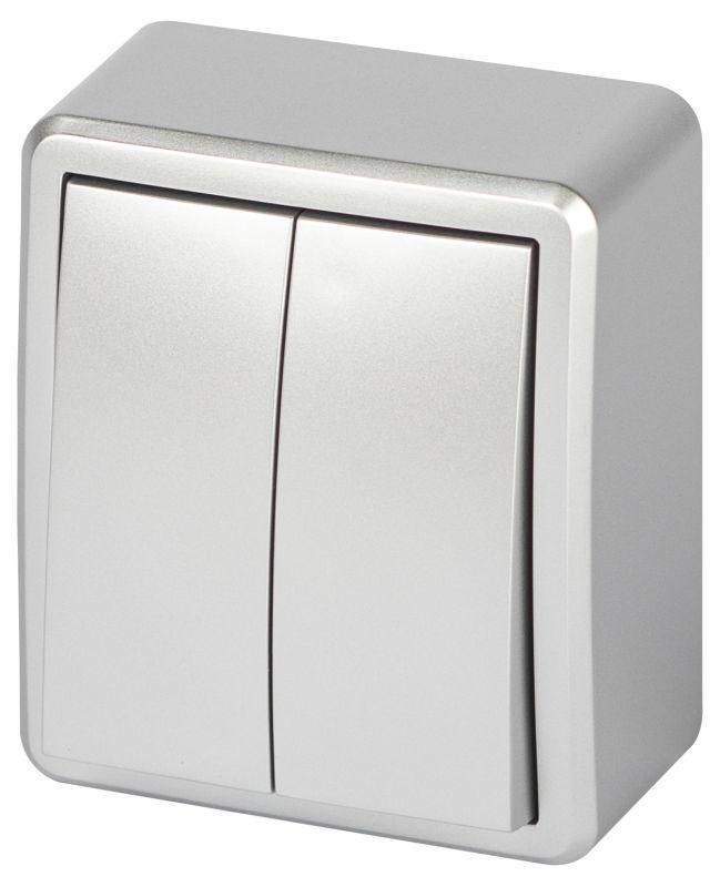 Выключатель двухклавишный наружный (открытой установки) IP 20 алюминий 10А 250В винтовые зажимы ЭРА Эксперт 11-1204-03 - Б0063035