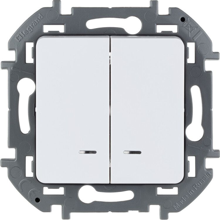 Выключатель двухклавишный с подсветкой/индикацией INSPIRIA 10 AX 250 В~ белый - 673630 Legrand