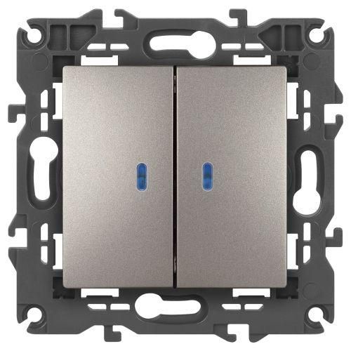 | Выключатель двухклавишный, в рамку (скрытого монтажа) с подсветкой титан 10А 250В автоматические (безвинтовые) зажимы ЭРА Elegance 14-1105-16 - Б0065789 | 14.03.2026 | 20 шт. | Розничная цена 558,15 ₽ | шт. | от 30 дней |