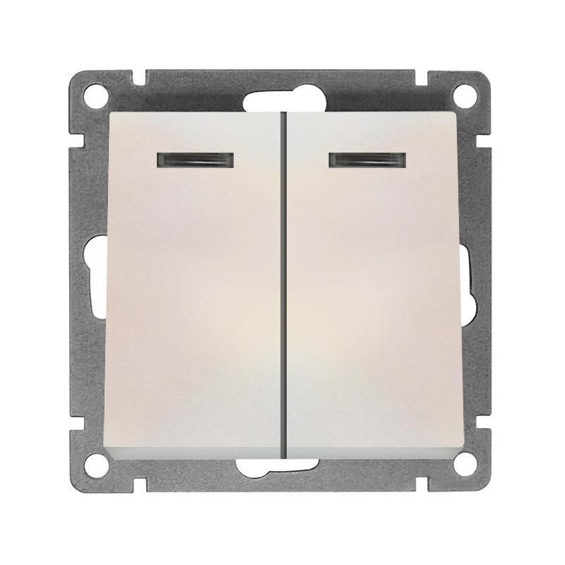 Выключатель двухклавишный с подсветкой серия Афина, с/у, 10А, 220В, жемчуг - A0123-OBr Союз