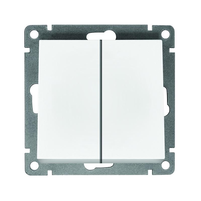 Механизм выключателя двухклавишный 10А 220В механизм белый (еврослот) серия Афина рассчитан на установку в стандартные металлические или пластиковые монтажные коробки глубиной не менее 40 мм. Совместим с любыми рамками серии «Афина» и другими изделиями с европейским форматом (еврослот). Для монтажа используйте два самореза и распорные лапки - они обеспечивают устойчивость даже при частом использовании. Подключение: фаза на входной контакт, выходные контакты - на две группы нагрузки. Ноль и заземление не подключаются к этому устройству.