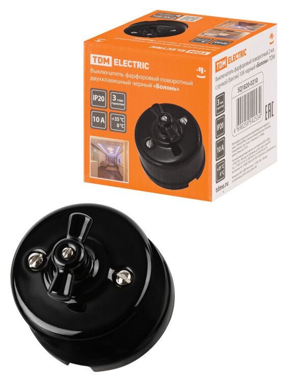 | Выключатель фарфоровый поворотный 2-кл. с ручкой (бантик) 10А черный «Болонь» | SQ1820-0210 | TDM | 06.03.2026 | Под заказ | 1 205,93 ₽ | шт. | от 30 дней |