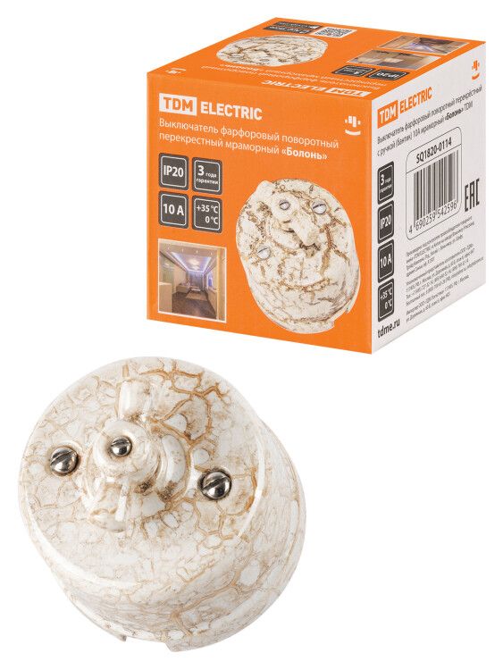 | Выключатель фарфоровый поворотный перекрёстный с ручкой (бантик) 10А мраморный «Болонь» | SQ1820-0114 | TDM | 06.03.2026 | Под заказ | 1 115,21 ₽ | шт. | от 30 дней |