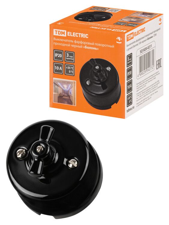 | Выключатель фарфоровый поворотный проходной с ручкой (бантик) 10А черный «Болонь» | SQ1820-0211 | TDM | 06.03.2026 | Под заказ | 1 329,05 ₽ | шт. | от 30 дней |