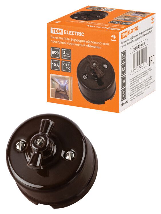 | Выключатель фарфоровый поворотный проходной с ручкой (бантик) 10А коричневый «Болонь» | SQ1820-0414 | TDM | 04.03.2026 | Под заказ | 1 429,3 ₽ | шт. | от 30 дней |