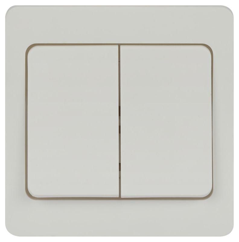 Выключатель двойной 10А 250В с автоматическим выключателем белый глянцевый IP20 предназначен для управления двумя независимыми группами освещения или другим электрооборудованием до 10 ампер. Подходит для установки в квартирах, домах, офисах, школах - там, где требуется частое включение/выключение нагрузки. Не предназначен для управления мощными двигателями, нагревательными приборами свыше 2,5 кВт или влажными зонами.