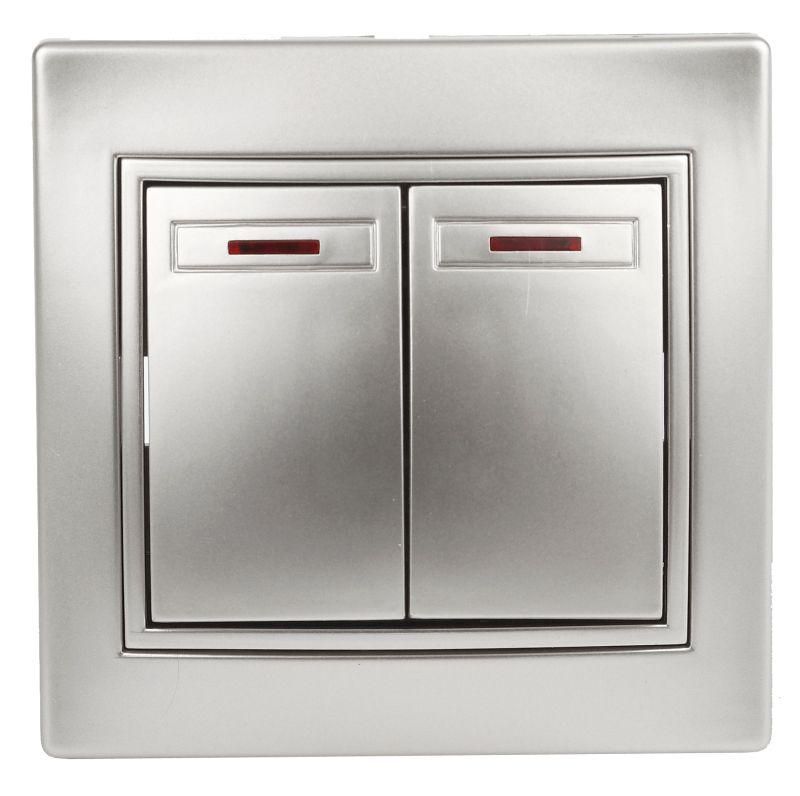 Выключатель двухклавишный, в рамку (скрытого монтажа) с подсветкой алюминий 10А 250В Intro Plano 1-105-03 - Б0053777 ЭРА