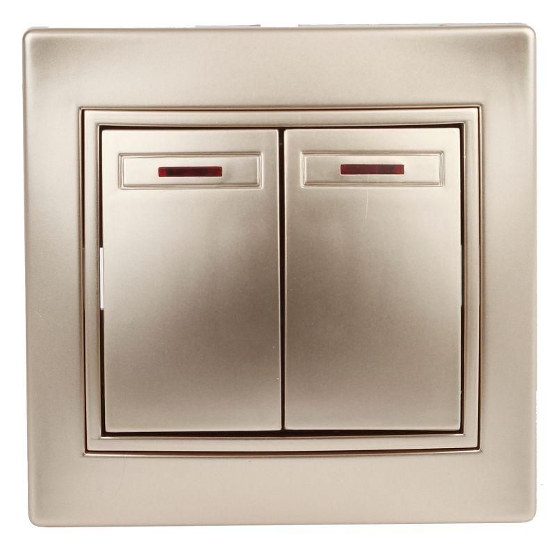 Выключатель двухклавишный, в рамку (скрытого монтажа) с подсветкой шампань 10А 250В Intro Plano 1-105-04 - Б0053778 ЭРА