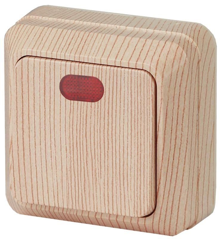 Выключатель одноклавишный наружный (открытой установки) с подсветкой сосна 10А 250В Intro Quadro 2-102-11 - Б0053747 ЭРА