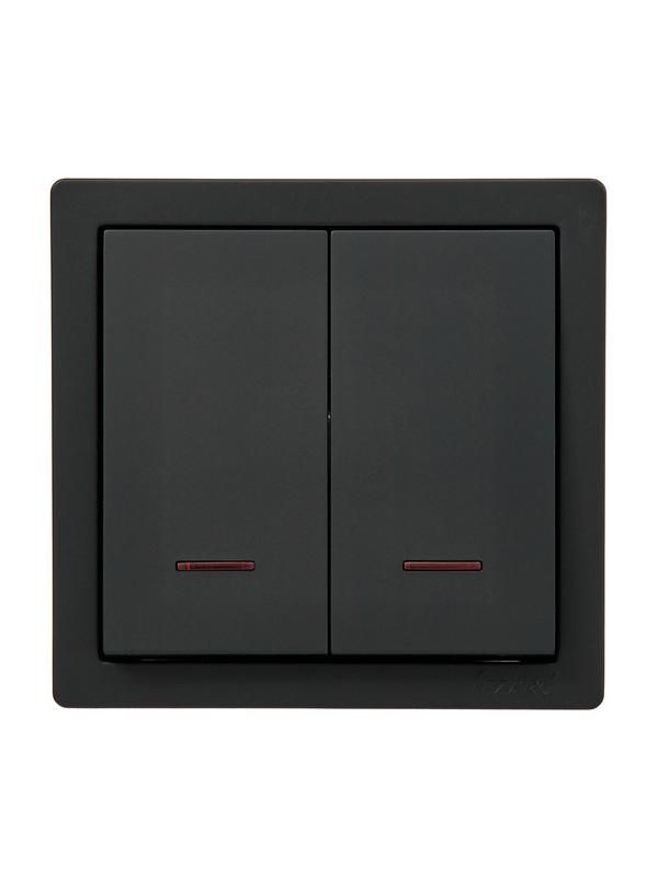 Выключатель 2-клавишный с индикатором черный бархат от бренда LEZARD (артикул 752-4200-112) предназначен для управления двумя группами освещения или нагрузок в помещениях с открытой проводкой. Его матовая черная поверхность с текстурой «бархат» снижает следы от пальцев, а встроенный индикатор показывает состояние цепи даже в темноте.