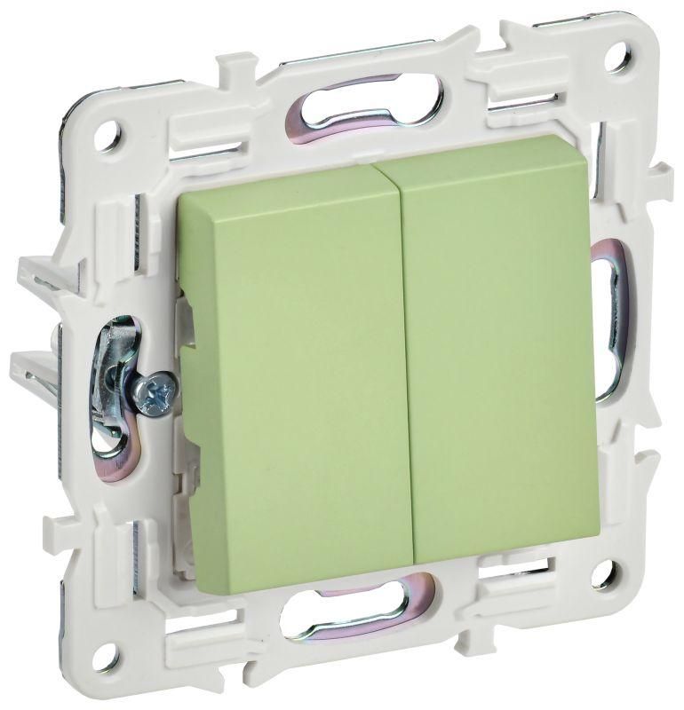 Выключатель 2-клавишный 10А мятный предназначен для управления двумя группами осветительных приборов - например, основным светом и подсветкой, или светом в двух зонах одной комнаты. Подходит для жилых помещений, офисов, гостиниц и других объектов с внутренней скрытой проводкой. Номинальный ток 10 А и напряжение 230 В позволяют использовать его с большинством бытовых ламп, включая LED-источники.