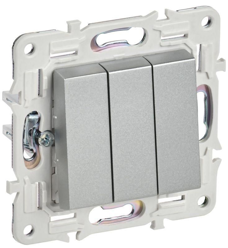 Выключатель 3-клавишный 10А SK-V11S серебряный имеет унифицированный размер 45×45 мм - совместим с большинством стандартных рамок серии SKANDY и аналогичных производителей. Крепится двумя способами: через распорные лапки в подрозетник и дополнительно на саморезы для фиксации. Применяет самозажимные клеммы - провода вставляются без предварительной зачистки и затяжки винтов. Для монтажа достаточно обычного набора инструментов: отвёртка и плоскогубцы. Накладка не требует демонтажа механизма - её можно заменить даже после установки.