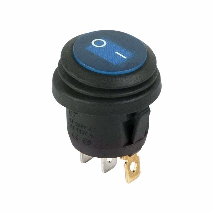 Выключатель клавишный круглый 250V 6А (3c) ON-OFF синий с подсветкой ВЛАГОЗАЩИТА | 36-2596 REXANT MEET