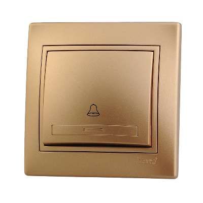 Выключатель кнопочный 1-клавишный золотистый металлик имеет встроенный монтаж - устанавливается в подрозетник стандартной глубины 40–45 мм. Клеммы для подключения провода расположены сзади, доступны после установки в стену. Для фиксации используются распорные лапки внутри корпуса.