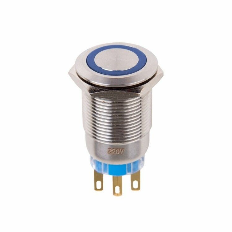 Кнопка антивандальная REXANT с артикулом etm36-3421 - это прочное устройство с синей светодиодной подсветкой и механической фиксацией на 5 секунд, предназначенное для надёжного включения и выключения цепей в условиях повышенной нагрузки и вандализма. Устройство подходит для установки на панелях управления в промышленных и общественных объектах.