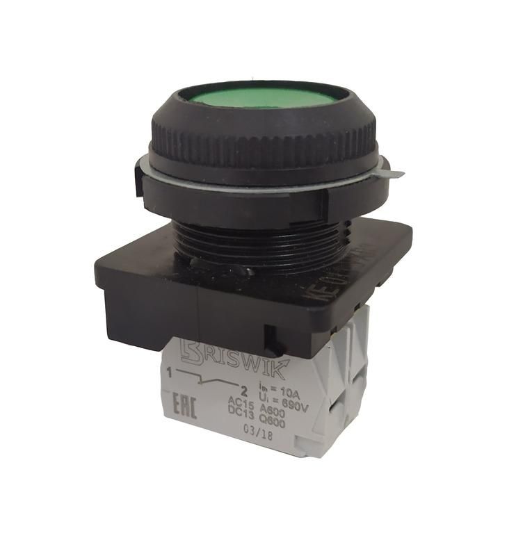 Выключатель кнопочный КЕ-181 исп.4 толкатель цилиндр. внутр. протектор виброзащита 1з+0рр 10А d посадочного отверстия 30мм ухл2 IP54 зел. Реле и Автоматика A8012-T40375464