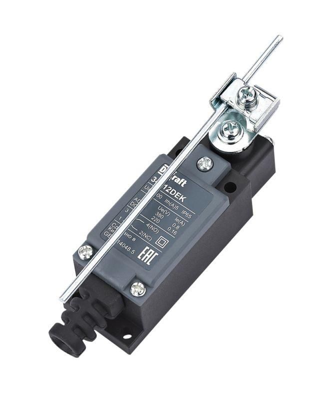 Выключатель концевой DEKRAFT 34012dek - это надёжный коммутационный аппарат с двумя контактами (1 нормально открытый и 1 нормально закрытый), управляемый регулируемым вращающимся стержнем. Подходит для точечного срабатывания в автоматических системах, где важна механическая точность и долгий срок службы даже в запылённых и влажных средах.