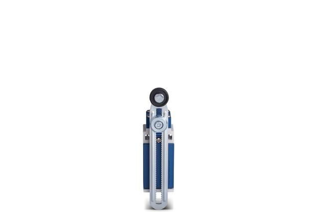 Выключатель концевой угловой 2-направленный с пластмассовой консолью, роликом Ø18 мм и регулируемым рычагом (1НО+1НЗ) от бренда EMAS, артикул L5K13MEP123 - надёжный элемент для фиксации положений движущихся частей оборудования, особенно там, где важна точная настройка и устойчивость к механическим воздействиям.