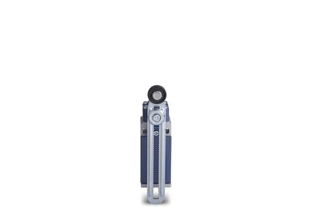 Выключатель концевой угловой 2-направленный с пластмассовой консолью роликом Ф18мм на регулируемом рычаге (1НО+1НЗ) от бренда EMAS - устройство для фиксированного срабатывания при достижении предельного положения механизма. Артикул L51K13MEP123 подходит для автоматизации станков, транспортеров и других систем, где требуется надежное определение крайних точек движения.
